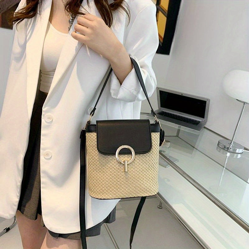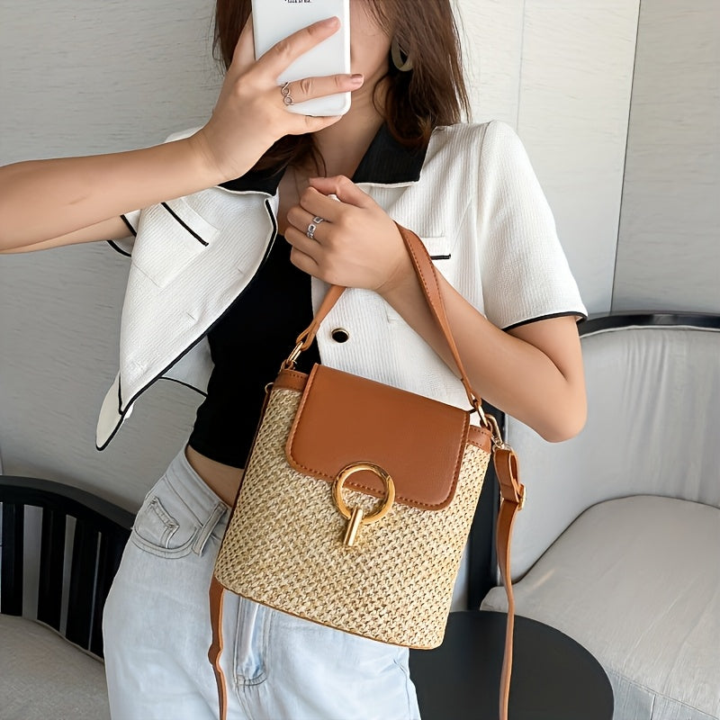 Le sac bandoulière Rhoma allie charme naturel et élégance moderne. Avec sa structure tissée et son fermoir métallique remarquable, ce sac est idéal au quotidien comme pour les sorties estivales.