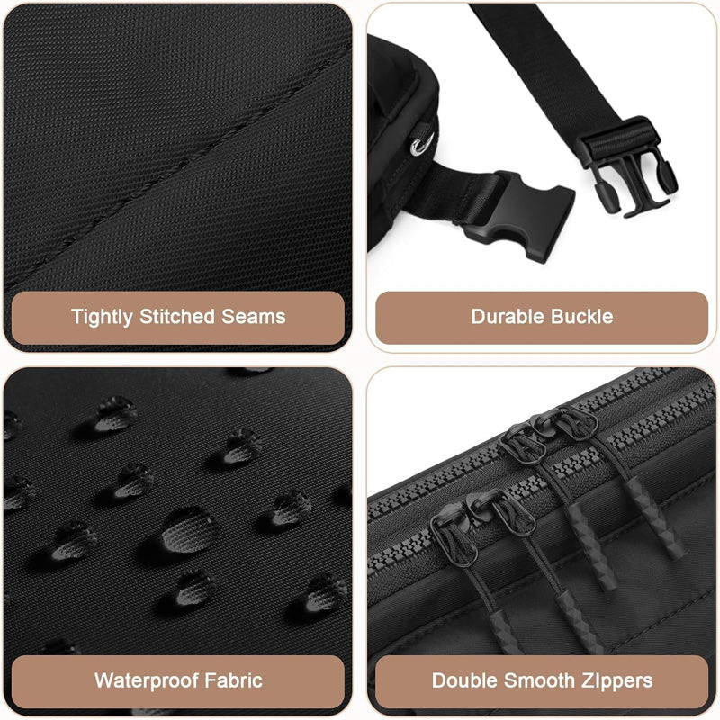 CEINTURE RÉGLABLE AVEC BOUCLE : La boucle sécurisée et la sangle réglable assurent un maintien stable. Portez-la confortablement à la taille ou transformez-la en sac bandoulière ; elle restera parfaitement en place même lors de mouvements brusques.