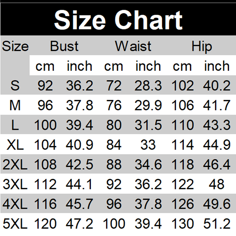 Maten: S, M, L, XL, 2XL, 3XL, 4XL, 5XL